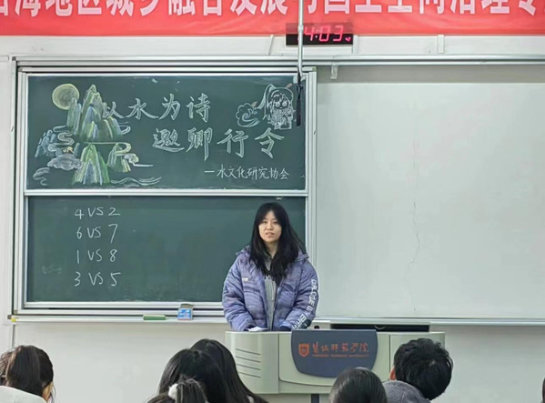 为使同学们深入了解学习水文化的同时提高诗词文学素养,从水的丰富寓意中得到启示,我院于11月25日在笃行楼A109组织开展“以水为诗,邀卿行令”飞花令主题竞赛活动。