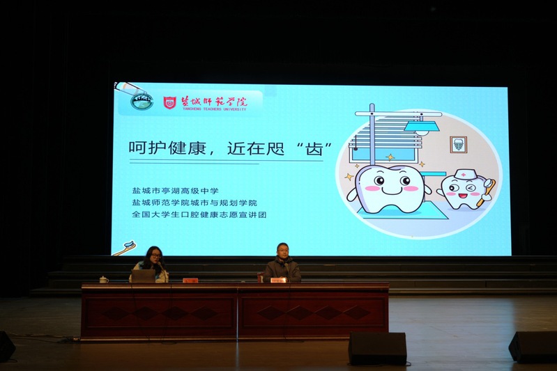 11月30日,我院“呵护健康,近在咫“齿””口腔志愿宣讲团前往江苏省盐城市亭湖高中进行口腔健康宣传与志愿宣讲,引导中学生掌握口腔健康的基本知识和个人卫生处理办法,形成良好的口腔健康行为习惯,呵护自身口腔健康。