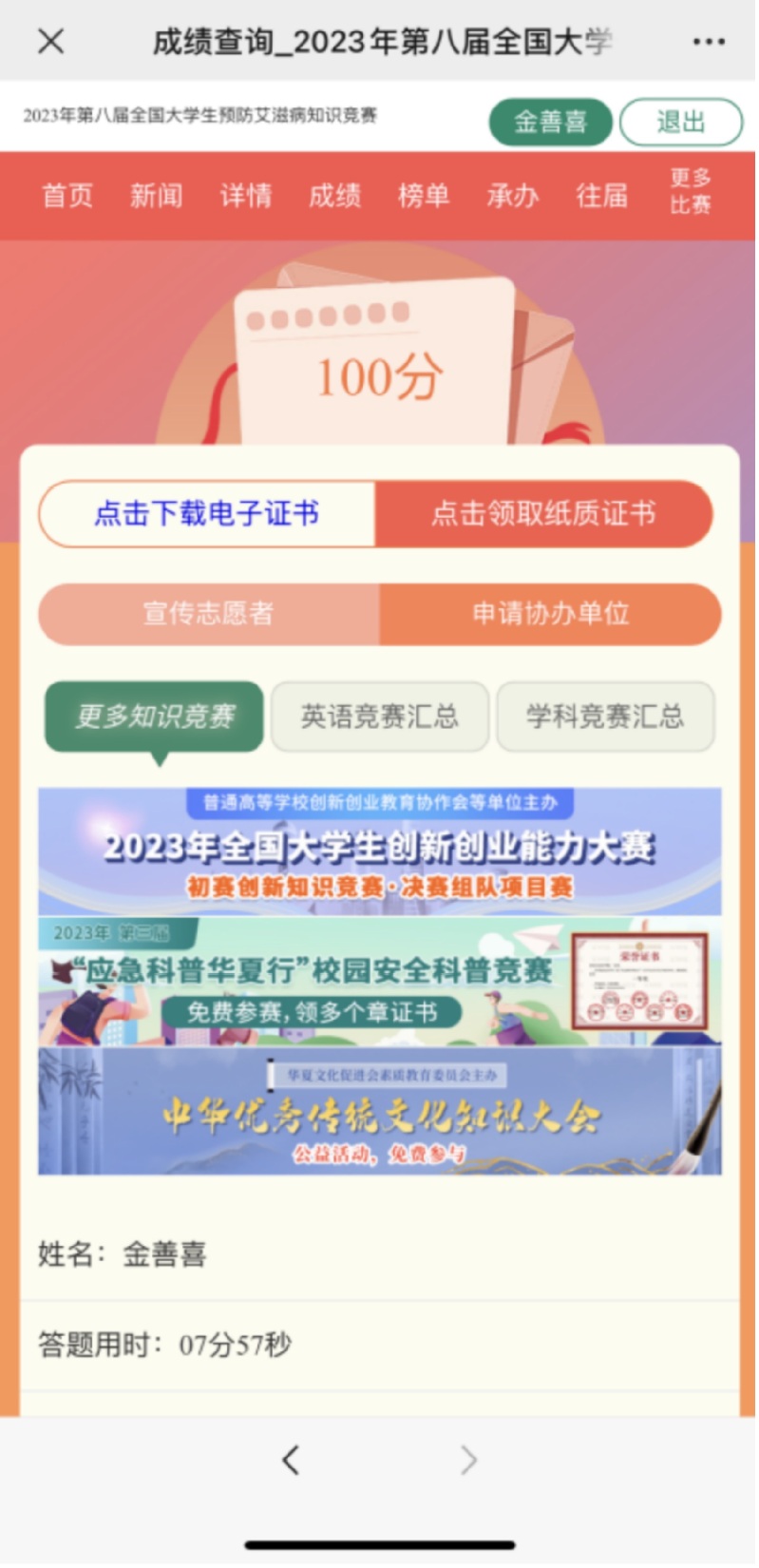 本次竞赛围绕艾滋病的防治开展,以单选题和多选题的形式呈现。在活动前,同学们积极上网查阅艾滋病相关知识,做好充足的准备工作。在活动中,同学们积极在规定时间内参与答题,并且大多数都取得了不错的成绩。活动后,大多同学们都表示自己对于艾滋病的认识更上一层楼,此次活动不仅提高了他们对艾滋病的认识,同时也帮助他们对于艾滋病的预防有了更深刻的了解。