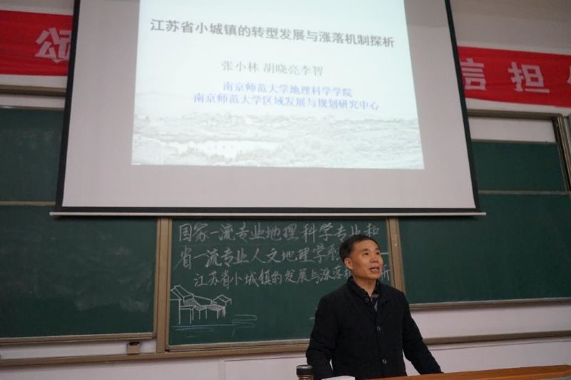 12月10日上午,南京师范大学博士生导师张小林教授应邀为我院师生作题为《江苏省小城镇的转型发展与涨落机制探析》的学术报告。校科技与产业处副处长张华兵、学院副院长朱天明、教师代表以及地理科学和人文地理专业的学生代表参加报告会,报告会由我院院长李传武主持。