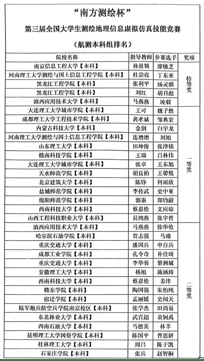 我院喜获第三届全国测绘地理信息大学生虚拟仿真技能竞赛一等奖