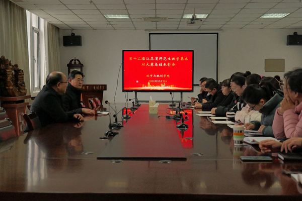 12月11日下午,我院于笃行楼A410召开第十二届江苏省师范生教学基本功大赛总结表彰会议。我院党委书记郝保成、院长李传武、地理科学系骨干教师、获奖学生出席总结表彰大会。