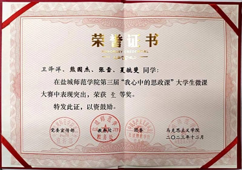 12月13日下午,由党委宣传部、教务处、校友办、马克思主义学院共同举办的我校第25届“创新杯”科技文化艺术节暨第三届“我心中的思政课”大学生微课大赛决赛在厚德楼A105智慧教室举行,我院人文236班卫泽洋的作品《黄土地上的红色故事》获得一等奖。