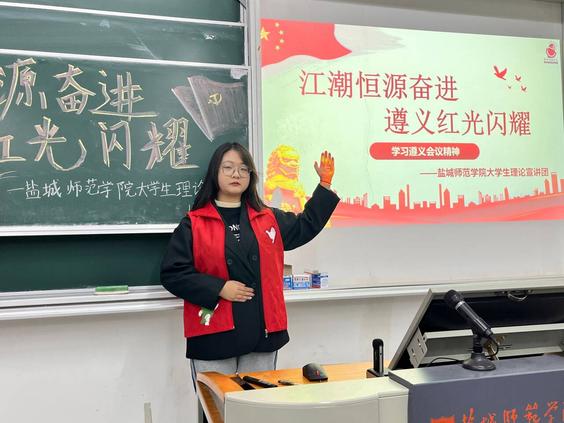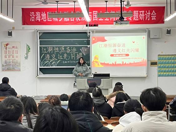 为全面学习贯彻党的二十大精神,深入贯彻落实习近平总书记提出的“传承红色基因、讲好遵义故事”的重要要求,12月13日下午,校大学生理论宣讲团走进我院开展“江潮恒源奋进,遵义红光闪耀”学习遵义会议精神大学生宣讲活动。