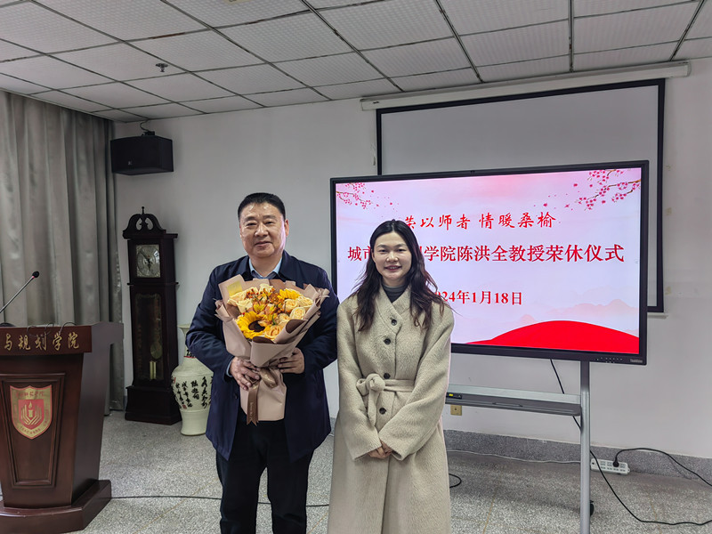 荣以师者,情暖桑榆。1月18日下午,城市与规划学院A410会议室温馨祥和,学院为原院长陈洪全教授举行荣休仪式。学院领导班子成员、教务处副处长王亮、科技处副处长张华兵和全体教职工参加仪式。