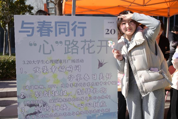 为保障大学生心理健康成长,丰富学生课余文化生活,提升大学生心理素质,营造和谐健康的校园文化,帮助学生学会关爱自我。我院开展“与春同行,‘心’路花开”320大学生心理健康月系列活动,为学生学习生活注入“心”动力。