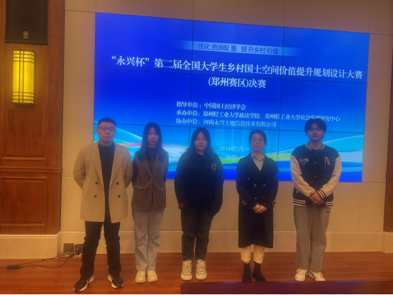 本届全国大学生乡村国土空间价值提升规划设计大赛由中国国土经济学会联合全国多所高校共同组织举办,大赛以“优化资源配置、提升乡村价值”为主题,旨在推动国土空间规划理论、方法与技术创新,调动大学生服务乡村振兴战略、建设美丽乡村的探索精神,促进乡村振兴战略与国土空间规划有效结合。在前期初赛遴选的基础上,我院与河南财经政法大学、河南农业大学、郑州轻工业大学等高校的16支团队进入当天的决赛。在决赛中,经现场汇报、评审等环节的激烈角逐,我院推送的作品获得二等奖。