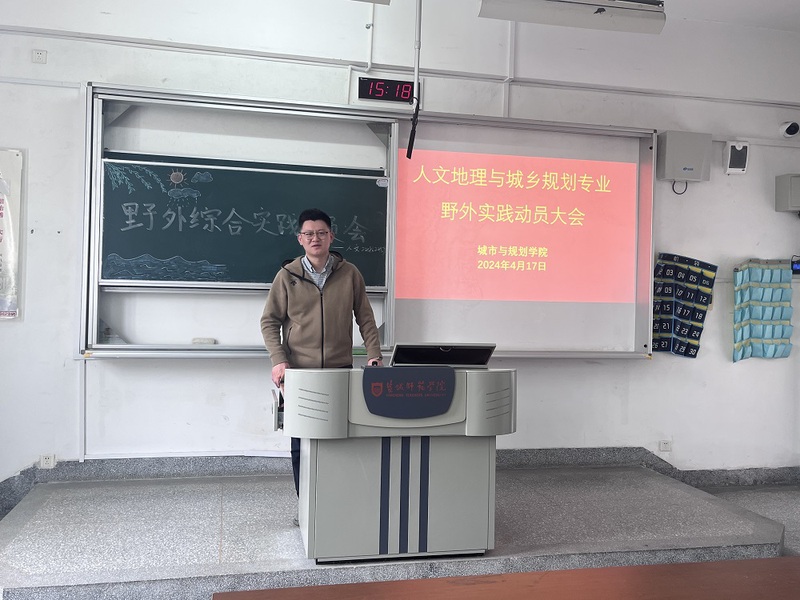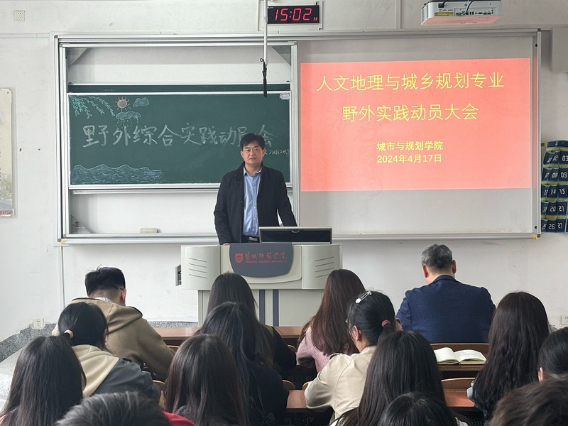 4月17日下午,城市与规划学院2022级人文地理与城乡规划专业野外实习动员大会在地理信息楼A211教室召开。城市与规划学院院长李传武,带队老师蒋超、吕敏娟、李俊灵出席会议,2022级人文地理与城乡规划专业全体学生参加本次会议,会议由副院长张云峰主持。