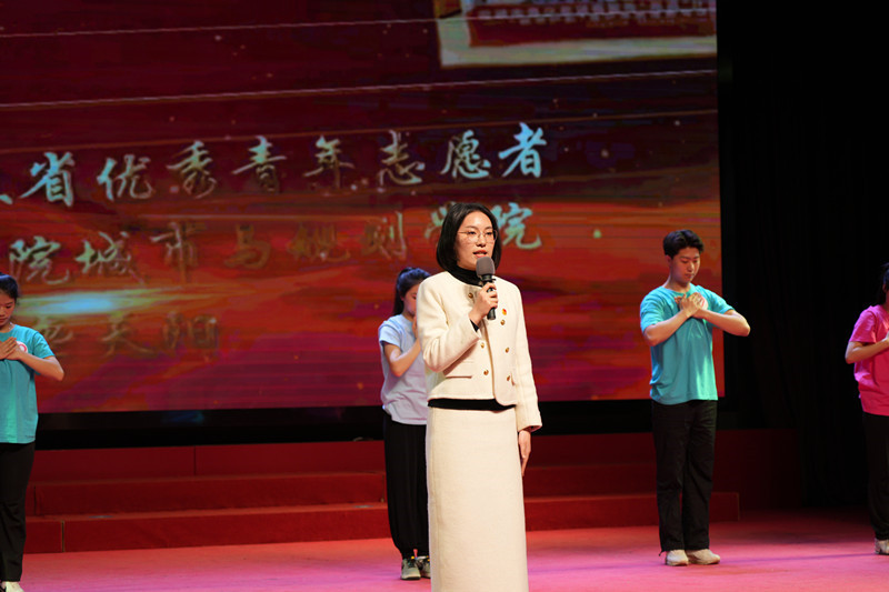 在第一篇章“青春·初心如磐”中,我院学生会轮值主席、校团委学生兼职副书记龚天阳带领新入团团员代表,面向鲜红的团旗立下庄严宣誓。在第二篇章“青春·奋发有为”中,我院第十八届“挑战杯”全国大学生课外学术科技作品竞赛“揭榜挂帅”专项赛特等奖团队成员人文224班张洁分享了她备赛的心路历程。在第三篇章“青春·挺膺担当”中,我院杰出校友代表2021和2022年江苏省委组织部名校优生选调生裴宁、郭凯辰分享他们在基层岗位上助力乡村振兴的青春故事;2023年江苏省优秀青年志愿者龚天阳以情景音诗画的形式,讲述了她参与防治结核、博爱青春、防艾禁毒等用微光照亮微光的志愿服务故事。在第四篇章“青春·勇毅前行”颁奖典礼中,我院被表彰为2023年度校五四红旗团委,院学生会被评为校“优秀学生分会”,爱心服务社被评为“十佳优秀社团”。