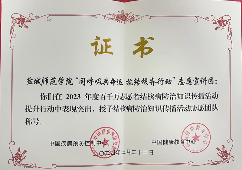 截至目前,实践团已奔赴江苏各地开展30余场“防治结核”志愿宣讲活动,联合盐城市疾控中心、校卫生所等开展健康专题讲座,参加盐城市结核病百千万志愿者培训班,致力于加强防治结核等基本公共卫生服务宣传,推动防治结核,赋能健康中国。《中国共青团杂志》《团学苏刊》《中国青年网》《盐阜大众报》《南通发布》等20余家主流媒体对实践活动进行了专题报道。