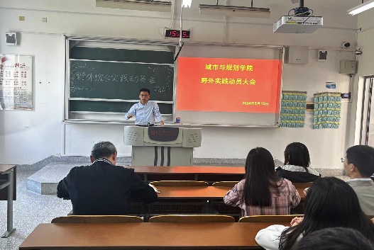 5月15日下午,我院2024年春学期皖南野外实践动员大会在城资楼210教室召开。学院院长李传武,系主任刘丙章、许君利,带队老师吕敏娟、彭琛琛出席会议,人文地理与城乡规划专业2021级,测绘工程专业2022级全体学生参加本次会议,会议由副院长张云峰主持。