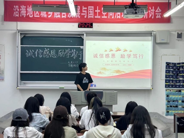 此次主题班会的召开贯穿了全学段各个专业的学生,各个班级分别通过视频观看、故事分享、小组讨论、感悟书写等多种形式诠释“诚信感恩,励学笃行”主题,共同探讨如何在日常学习与生活中更好地践行诚信感恩和励学笃行的行为准则。地科232班陈小红同学说:“诚信感恩和励学笃行不仅是一种品质,更是一种生活态度,我今后会以诚信为本,以感恩为怀,励学笃行,不断进步,成为更优秀的自己。”