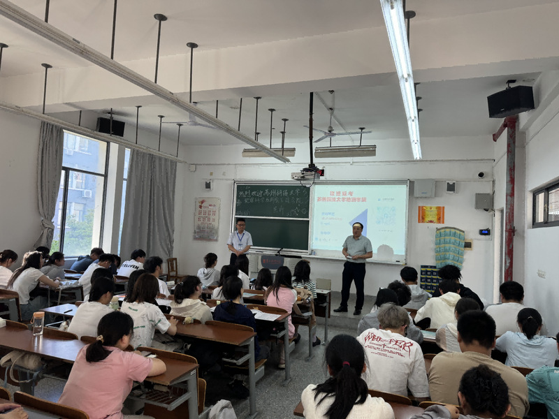 会前,李传武对陈德超一行的到来表示热烈欢迎,李传武简要介绍我院各专业的基本情况,并详细汇报了近三年相关专业的考研情况。会上,陈德超首先详细介绍了苏州科技大学的整体概况和荣誉成就并播放了苏州科技大学的宣传视频。接着,就苏科大地测院的师资力量,学科建设以及人才培养方案进行了系统的讲解。最后,陈德超结合具体实际,列举了我院学生可以报考的专业,并逐一解答学生考研相关问题,为学生提供了精准,个性化的报考建议。会后,吴恒仲对本次会议进行总结,勉励同学们做好时间规划,以积极的心态正对待考研,并希望大家对此次苏科大地测院的报考建议进行有针对性的学习。