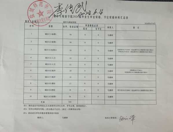 城市与规划学院2024届毕业资格审核汇总表