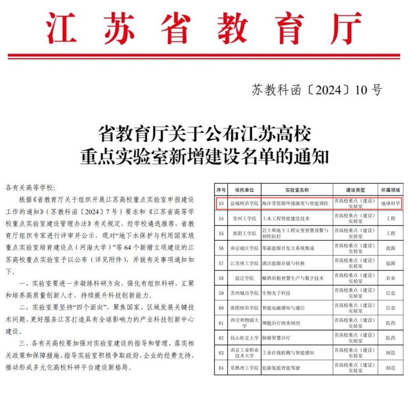 6月28日,江苏省教育厅公布2024年江苏高校重点实验室新增名单,学院获批“海岸带资源环境演变与智能调控”省高校重点(建设)实验室。至此,学院成为全校唯一同时拥有自然科学和哲学社科省级科研平台的二级学院。
