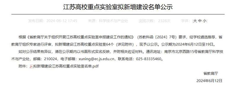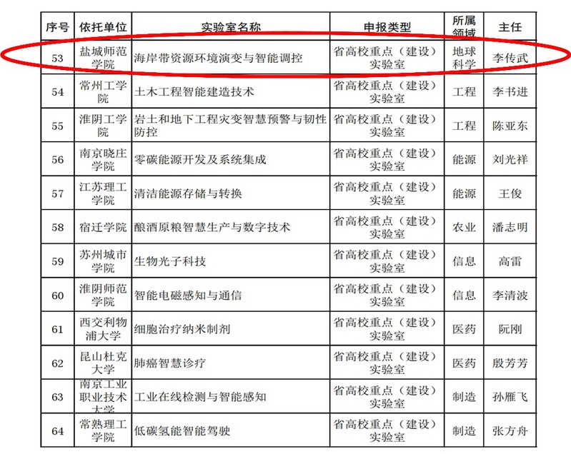 根据《省教育厅关于组织开展江苏高校重点实验室申报建设工作的通知》(苏教科函〔2024〕7号)要求,经学校遴选推荐,省教育厅组织专家进行评审,发布高校重点实验室拟新增建设名单。我院成功获批江苏省海岸带资源环境演变与智能调控重点(建设)实验室。下一步,学院将以高水平建设江苏高校重点实验室为抓手,进一步凝练科研方向,加大科研建设投入,打造高水平科研团队和高贡献科研体系,为全面提升学院人才培养质量提供有力支撑。