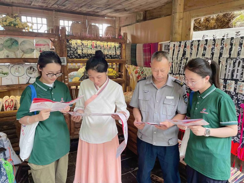 随着酉阳依托当地壮美的自然风光进行特色农旅产业的开发,在百姓们收入增加、生活水平提高的同时,普通话使用场景和频率也逐渐增加,这一变量如春雨润物般悄无声息地影响着当地居民的语言使用习惯,“学能以致用”成为推广普通话时最大的助力。实践团成员邀请酉州古城景区、酉水河湾景区等地居民填写推普调查问卷,在了解百姓们普通话水平的同时,也向其宣传了讲好普通话、讲好规范字在农旅产业经营中能够起到事半功倍的作用。