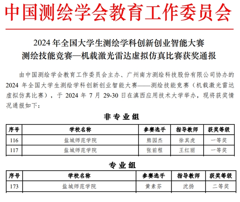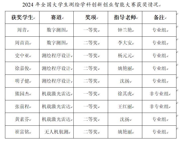 我校城市与规划学院参赛学生成绩突出,共荣获一等奖4项、二等奖5项。其中,专业组的数字测图、测绘程序设计、机载激光雷达和无人机航测四个赛道,分别荣获一等奖2项,二等奖5项;非专业组的机载激光雷达赛道荣获一等奖2项,在同层次高校中成绩突出。