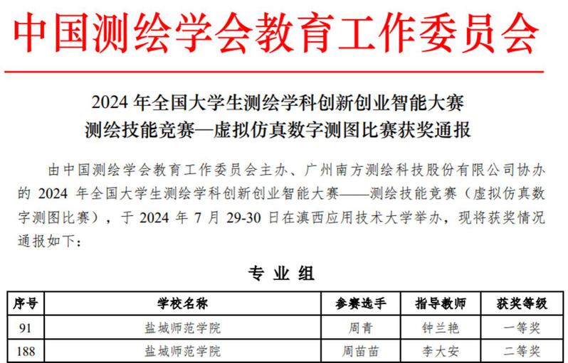 城市与规划学院一直高度重视学生专业实践能力培养,把学生参加高层次专业比赛作为高质量人才培养和学院内涵式发展的重要抓手之一。此次大赛获得佳绩,充分展现了我院学子的专业技能和创新开发能力,提升了我院在国内高校测绘行业的影响力和知名度。(图文:许君利,徐韦)