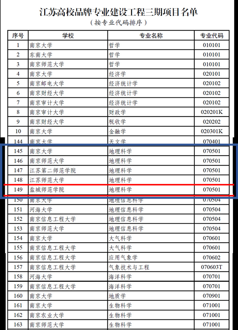 2024年8月16日,省教育厅公布了《关于江苏省高校品牌专业建设工程三期项目名单》。在此次江苏高校品牌专业建设工程中,全省仅有5个地理科学专业获批,分别为南京大学、南京师范大学、江苏师范大学、必发集团welcome欢迎光临和江苏第二师范学院。我院地理科学专业成功入选,标志着我院在江苏高校品牌专业建设中取得了重大突破。