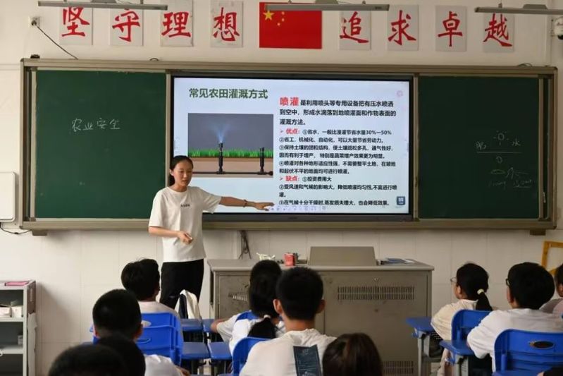 7月25日,实践团前往扬州市经济技术开发区实验中学,举办农业科普讲座以及普法宣讲。团队成员先向同学们科普了常见的农业灌溉技术及农田灌溉安全措施。随后,在介绍农药安全使用等内容时向同学们普及了中华人民共和国土壤污染防治法、农药管理条例等法律知识。此外,团队成员还向学生们介绍了农业机械安全知识、畜禽养殖安全、农产品质量及食品安全等内容。最后,实践团成员与学生们进行互动,开展对比不同牛奶营养成分配比间的区别和垃圾分类等小游戏,积极引导同学们关注乡村发展及农业安全。
