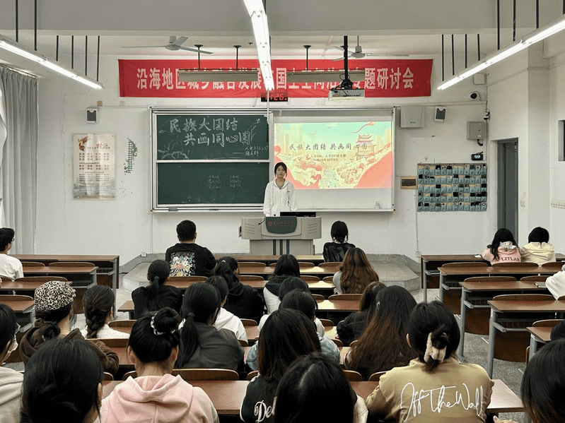 活动中,各班团支部组织同学们观看“习近平总书记在全国民族团结进步表彰大会上发表重要讲话”视频,深入学习中华民族共同体建设,巩固发展中华民族大团结理念。活动期间,各班团支部从铸牢中华民族共同体意识的核心要义、铸牢中华民族共同体意识的重大原则、铸牢中华民族共同体意识的重点任务这三个方面增进同学们对伟大祖国、中华民族、中华文化、中国共产党、中国特色社会主义的认同,动员引领广大青年凝心聚力、奋发进取,强化铸牢中华民族共同体意识的使命担当。同学们结合自身情况,针对“如何铸牢中华民族共同体意识”进行交流,其中地科232班郭庭妤同学表示:“民族大团结是一种珍贵的价值理念。在大学校园里,我们接触到来自不同民族的同学,亲身体会到各民族文化的丰富多彩。”