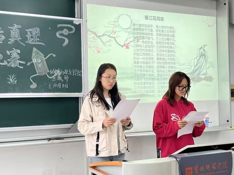 我院学子积极报名、踊跃参与,他们或深情朗诵古诗词,或激昂演绎经典篇章,以声传情,以情动人,展现了青年学子的深刻理解与独特感悟。比赛现场,选手们或慷慨激昂,或温婉细腻,将经典作品中的思想精髓与情感力量传递给在场的每一位观众,为大家献上一场精彩的文化盛宴。精彩纷呈的比赛过后,经过学院评比,诵读者获得一等奖的同学有:城23(3)地理S蔡淑敏、城24(6)人文刘羽燨、城23(3)地理S巫妍洁;获得二等奖的同学有:地24(1)地理S杨雯媛、地24(1)地理S陆欣怡。PPT与讲稿的获奖情况如下,一等奖:城23(2)地理S仲敏、城23(6)人文陈蓉;二等奖:城23(7)人文鲍柯言、城23(7)人文冯洁娴、城23(1)地理S韩妙恩、城24(1)地理S吕丹毅、城24(2)地理S于欣彤,祝贺以上同学获取佳绩!