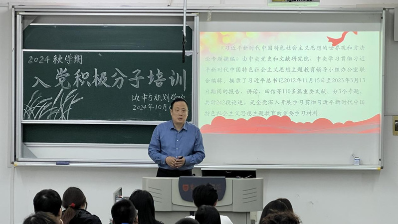 为进一步提高入党积极分子党的基础理论素养,端正入党动机,坚定入党决心。10月16日,我院开展2024年秋学期入党积极分子培训。此次培训邀请了学院党委副书记吴恒仲讲授《习近平新时代中国特色社会主义思想蕴含的马克思主义立场观点和方法》的专题党课。