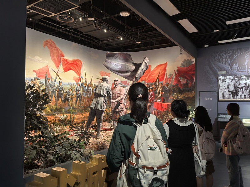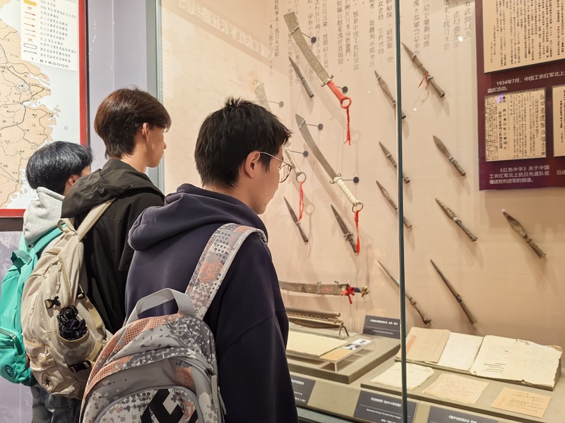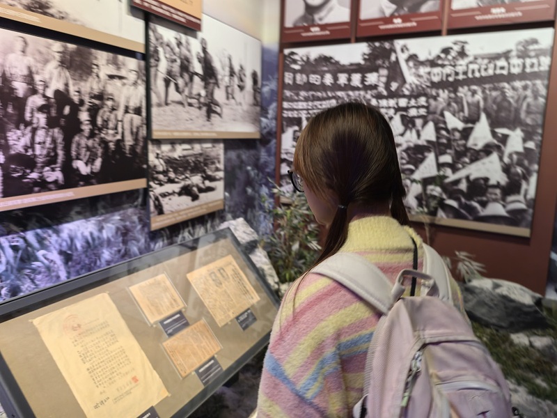 在纪念馆讲解员的带领下,同学们通过一幅幅生动的图片资料、一段段感人的文字介绍、一件件珍贵的革命文物,深入了解新四军的光辉历程,近距离感受当年新四军战士们浴血奋战的悲壮场面和不畏艰险、奋勇拼搏的革命精神,激发内心深处的爱国情怀和使命感。地科241班彭诗贻表示:“通过参观新四军纪念馆,我深刻感受到新四军的艰苦奋斗、不怕牺牲的伟大精神。作为新时代青年大学生,我们要珍惜现在的幸福生活,发扬铁军精神,勤奋刻苦学习,努力成为一名优秀的人名教师,为实现教育强国努力奋斗。”