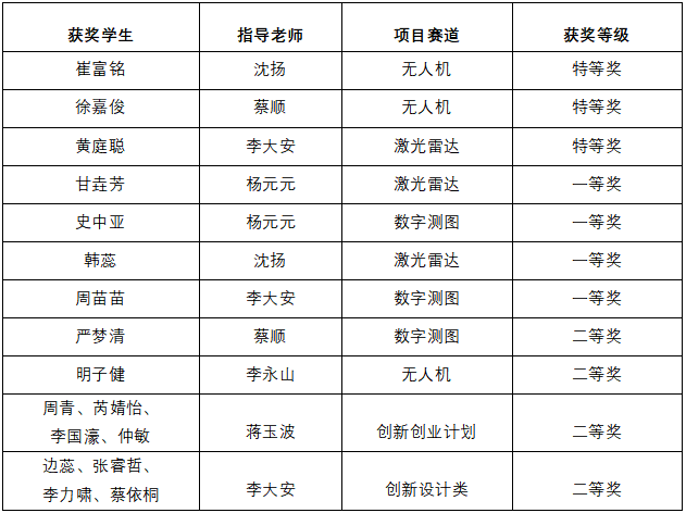 我校城市与规划学院测绘工程专业参赛学生成绩突出,共获奖11项,其中,特等奖3项、一等奖4项,二等奖4项,特等奖获奖数位列全省第四。其中,城22(6)班崔富铭与城23(4)班徐嘉俊荣获无人机航测赛道特等奖,城22(6)班黄庭聪荣获激光雷达赛道特等奖。此外,蔡顺、沈扬与李大安老师荣获优秀指导老师。