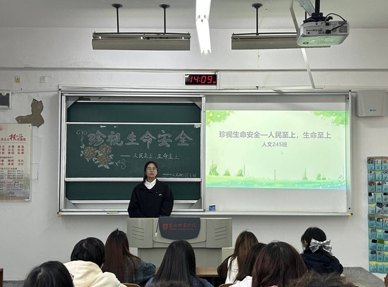 活动中,各班团支书介绍了基本的安全自护知识,强调了生命安全的重要性,呼吁同学们增强自我保护意识,提高自护自救能力,从而保障自身生命安全和财产安全。活动期间,各团支部组织全体同学观看“人民至上”学习强国视频,同学们深刻地认识到中国共产党代表最广大人民的根本利益,坚持以人民为中心的发展思想,全心全意为人民服务,把人民对美好生活的向往作为奋斗目标。同学们依据主题团日活动内容并结合自身情况,针对“如何落实人民至上、生命至上的宗旨”展开讨论。人文236班的董枳贝同学表示:“我们青年大学生应该增强安全意识,做好各种安全防范措施,确保自己和他人的生命安全。我们应积极参与社会公益项目,关注弱势群体,树立正确的价值观,传播“人民至上、生命至上”理念,让更多人重视生命安全和人民权益。”
