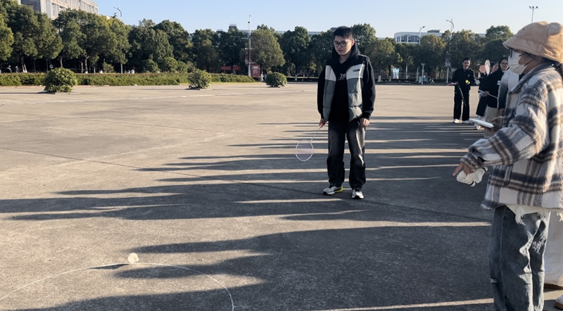 本次活动旨在丰富同学们的课余生活,通过手脑并用的方式加深他们对羽毛球知识的了解,提高同学们的身体素质。活动以线下定点入球的方式开始。每位同学有三次击球的机会,击入圆圈再回答关于羽毛球的问题,按答对次数计分。活动中,同学们按照规则进行挑战,有的同学精准打击,频频得分;也有同学偏离目标,但他们并不气馁,仍然积极尝试。一轮比赛后,海洋244班的马杨阳同学表示:“定点入球对羽毛球技术的要求很高,但我在一次次尝试中感受到了羽毛球的魅力。希望以后我能再次参加此类活动,感受丰富多彩的校园生活。”