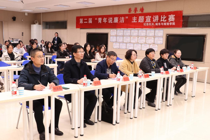 12月4日晚,由校纪委机关、校团委主办,我院承办的校第二届“青年说廉洁”主题宣讲大赛决赛在公共教学楼A102智慧教室举行。我校18个二级学院参加初赛,经过评委初审评选,最终9个二级学院推荐的选手作品入围决赛环节。决赛现场选手同台竞技,讲廉洁故事,做有为青年。校党委常委、纪委书记、省监委派驻监察专员韩雅丽,校党委常委、党委宣传部部长、新闻中心主任冯永玲,校党委常委、党委统战部部长费正皓,校党委学生工作部部长、学生工作处处长李健明,校党校副校长、社会主义学院副院长、党委组织部副部长朱京凤,校纪委办公室主任戴朝晖,校党委保卫部部长、党委人武部部长、保卫处处长杨海东出席决赛并担任评委。