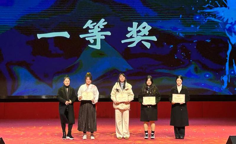 我院以一场《只此青绿》吸引了众多观众与舞蹈爱好者的目光,在舞台上她们身着飘逸的古装,长袖善舞,将千年古韵展现得淋漓尽致,仿佛带领观众穿越时空,领略古代文化的独特魅力。她们以优异的舞姿和卓越的团队精神赢了评委和观众的热烈掌声,荣获一等奖。