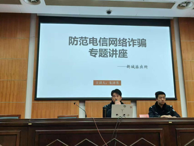 讲座伊始,朱津苇警官便以当前网络诈骗的严峻形势敲响警钟,指出电信诈骗已成为大学生群体面临的重大安全隐患之一。随后,他详细介绍了电信诈骗的主要形式。如网络刷单诈骗,犯罪分子常以小额返利为诱饵,诱导学生逐步投入大量资金;虚假网络贷款诈骗,骗子利用学生资金需求,以各种理由收取手续费、保证金等;冒充公检法诈骗,诈骗分子冒充官方人员,利用学生对权威的信任进行恐吓诈骗等。