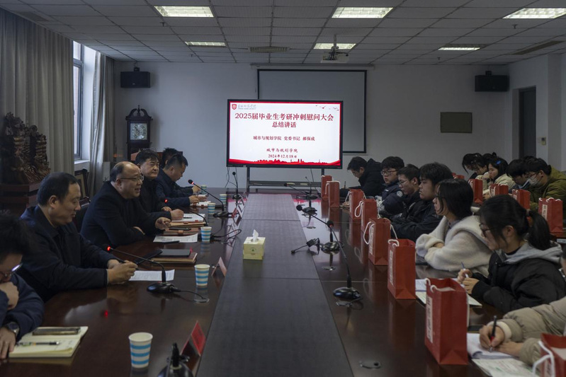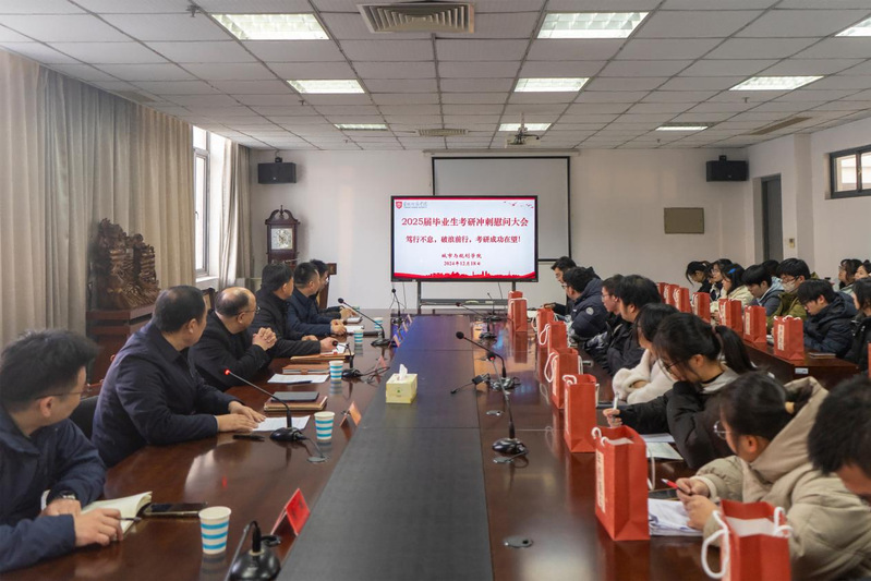 在2025年考研即将到来之际,为鼓舞考研学子士气。12月18日下午,我院在笃行楼A410举办2025届考研冲刺慰问活动。学院领导郝保成、李传武、吴恒仲、朱天明,毕业班辅导员班主任老师,2025届考研学生代表参加活动。党委副书记吴恒仲主持慰问活动。