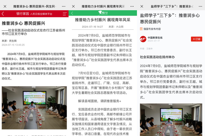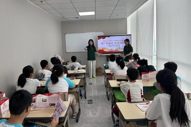 2024年暑期,在习近平总书记“全面推广普及国家通用语言文字,促进心灵与命运相通”的号召下,我院“推普润乡心”社会实践团在两个月的时间里走访江苏省扬州市、盐城市、南通市、镇江市、常州市、苏州市、陕西省榆林市、重庆市酉阳土家族苗族自治县、四川省广元市等地区的80余处实践地点,面向居民村民、企业员工、留守老人儿童、少数民族等群体开展专项座谈交流和“推普”专题宣讲,受益群众超过2000人。相关活动新闻被学习强国平台、中国青年网、交汇点新闻等国家级、省市级主流媒体报道50余篇次。