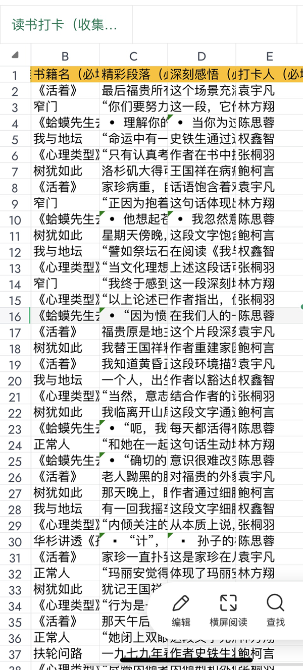 活动中,读书小组的同学们围绕“经典溯源”主题,坚持每日读书打卡,用文字生动分享阅读中的精彩片段与深刻感悟,探寻作品中所承载的历史文化脉络、社会风貌与人文精神。人文237班的袁宇凡同学分享了自己阅读《活着》的个人感悟,“从初始的悠然到其后的凝重,翻动书页的手指愈渐迟疑,我感到心中似乎有一种隐秘的期待——呼唤着一个转折,一个让主角福贵走向幸福的转折”。她的分享让阅读生动起来,读书小组的同学们也纷纷为她鼓起掌来。权鑫智、鲍柯言同学还分享了《我与地坛》、《树犹如此》等经典书籍,在阅读中挖掘了经典文化的深厚底蕴,分享了他们的独特见解。