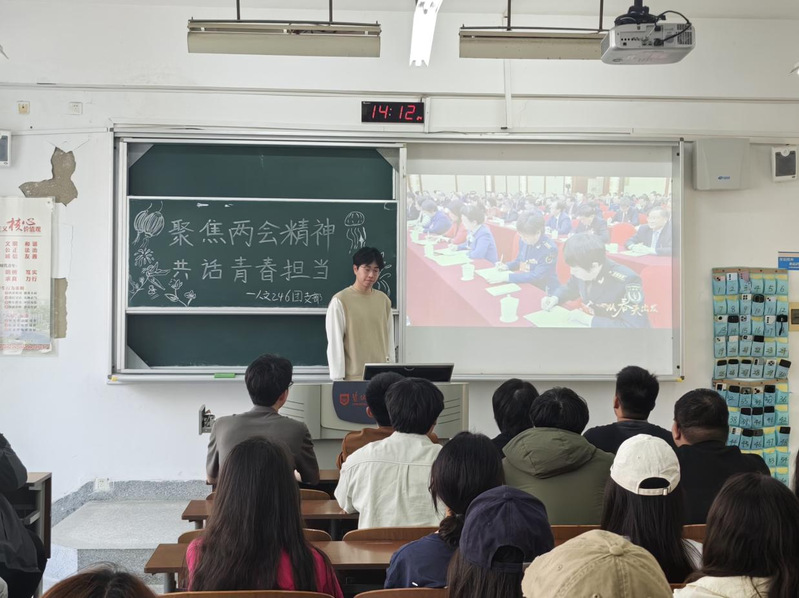活动中,各班团支书阐释了全国两会的基本概念、重要议程以及深远意义,从政府工作报告、民生热点问题、教育改革方向等多个角度深入解读全国两会精神。各团支部组织全体同学观看了“青年大学习”两会特辑的相关视频,通过影像资料让同学们更直接地了解两会动态,拓宽视野。同学们依据主题团日活动并结合自身情况,针对“聚焦两会精神,共话青春担当”展开交流讨论。海洋244班的江顾佳同学表示:“身为当代青年,自当以两会精神为指引,将个人成长融入国家发展,在学习中增长知识、锤炼品格,在实践中施展才华、建功立业 ,为强国建设添砖加瓦,不负时代,不负韶华!”