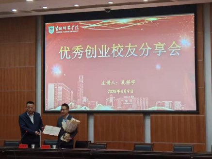 为深化学生职业发展教育,提升职业规划能力与就业核心竞争力,持续激发创新创业活力,4月9日下午,我校在新长校区图书馆学术报告厅举办“优秀校友创业分享会”活动,特邀青年企业家、优秀校友孔祥宇担任主讲嘉宾。我院组织大一、大二及大四年级学生代表参与活动,聆听政策解读与实战经验。