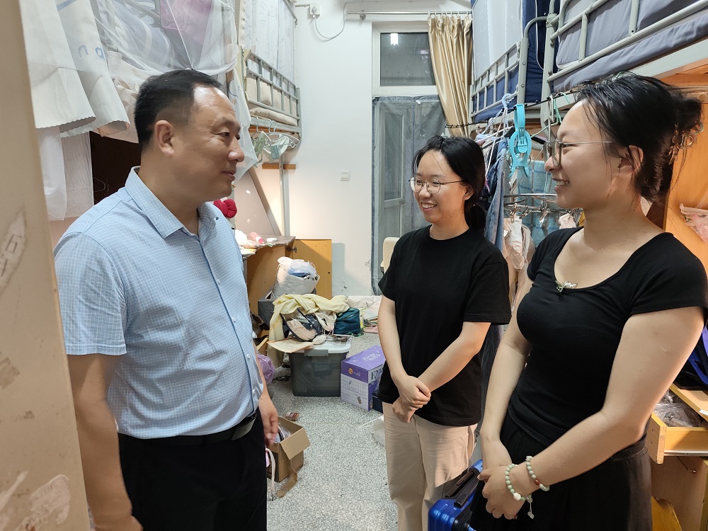 为进一步做好毕业生离校教育工作,及时了解毕业生所思所想,确保毕业生安全、平稳离校。6月15日晚,院党委副书记吴恒仲携辅导员、毕业班班主任深入毕业班宿舍,看望慰问毕业班学生,表达学院对毕业生的深切关怀和美好祝愿。