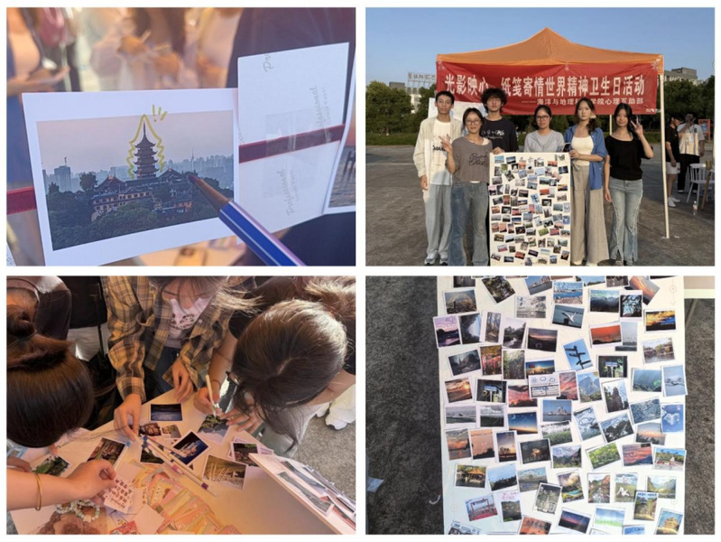 活动分为“情绪涂鸦”与“照片分享”两个环节。同学们以前期征集的地理景观照片为画布,用彩绘笔自由勾勒象征心情的图案与色彩,将抽象情感转化为具象视觉语言。“照片分享”环节集中展示了学生在自然探索、红色寻访与日常生活中的摄影作品,辅以匿名心情留言,每一张照片与每一段文字,共同编织成一幅融地理视野与情感故事于一体的画卷。参与活动的25级学生表示,活动不仅缓解了入学适应阶段的压力,也在欣赏祖国山河与人文风貌的过程中,增强了对专业的认同感与文化自豪感。