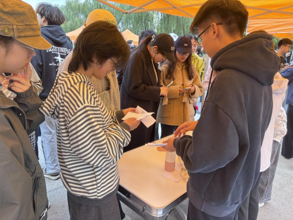 活动现场气氛热烈,形式新颖的英语趣味游戏吸引大量同学驻足参与。“快问快答”单元中,参与者需快速反应,精准表达词汇释义,获奖者敏捷的思维与流畅的表达赢得阵阵掌声;其后的“趣味接龙”环节则考验大家的临场反应与词库积累,同学们围绕单词首尾字母巧妙衔接,在轻松愉快的氛围中展现出扎实的英文功底。整场活动在互动与欢笑中落下帷幕,不仅有效激发了参赛者的英语学习热情,也使冲浪英语协会“寓教于乐,学以致用”的社团特色深入人心。活动现场,许多同学在询洽社团事宜后,当即表达了加入意愿,踊跃参与报名。