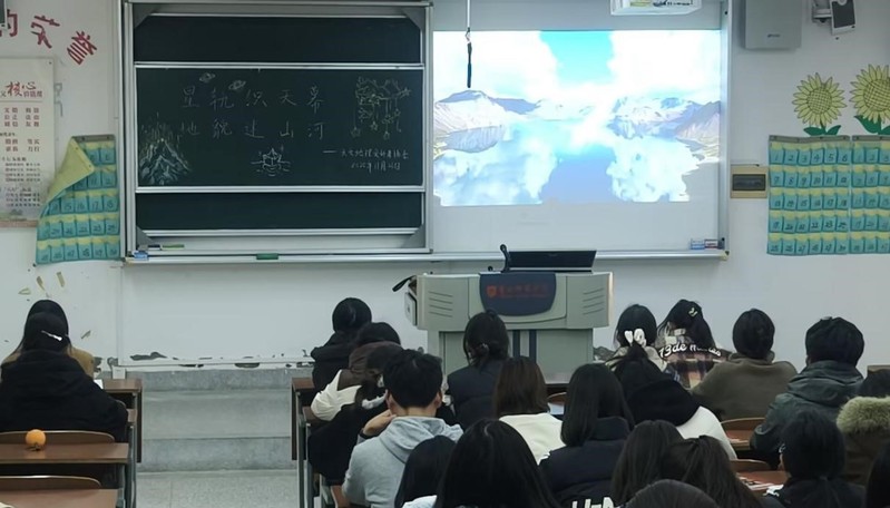 活动开始,社团成员在场地入口组织到场学生有序签到;随后开启“星地探索互动”环节:首先播放了天文观测影像,展示了星轨运行的精密规律;其次播放了长白山地理景观纪录片片段,呈现出山川河湖的自然底蕴;接着现场还设置了简易交流环节,同学们围绕影像内容分享了观察感受。接着,地理景观纪录片片段依次呈现,生动展示了山川河湖的地理底蕴;活动全程,同学们专注观看,不时交流对天文地理现象的思考。