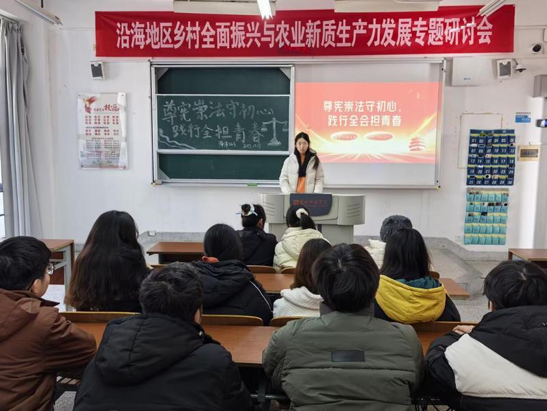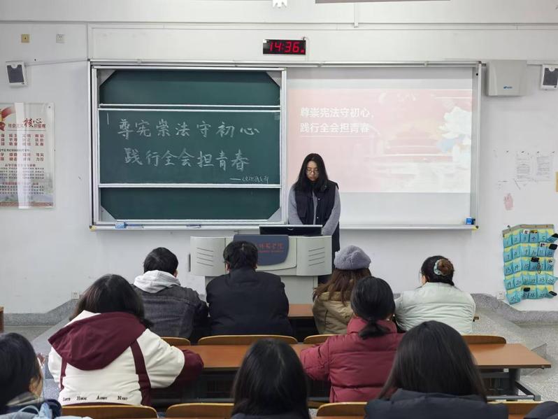 为深入学习贯彻宪法核心要义与党的二十届四中全会精神,扎实推进青年法治素养培育,筑牢团员理想信念与法治根基,引导广大团员坚守初心使命、强化责任担当,以昂扬姿态践行青春使命。12月17日,我院各团支部在笃行楼开展“尊宪崇法守初心,践行全会担青春”的主题团日活动。