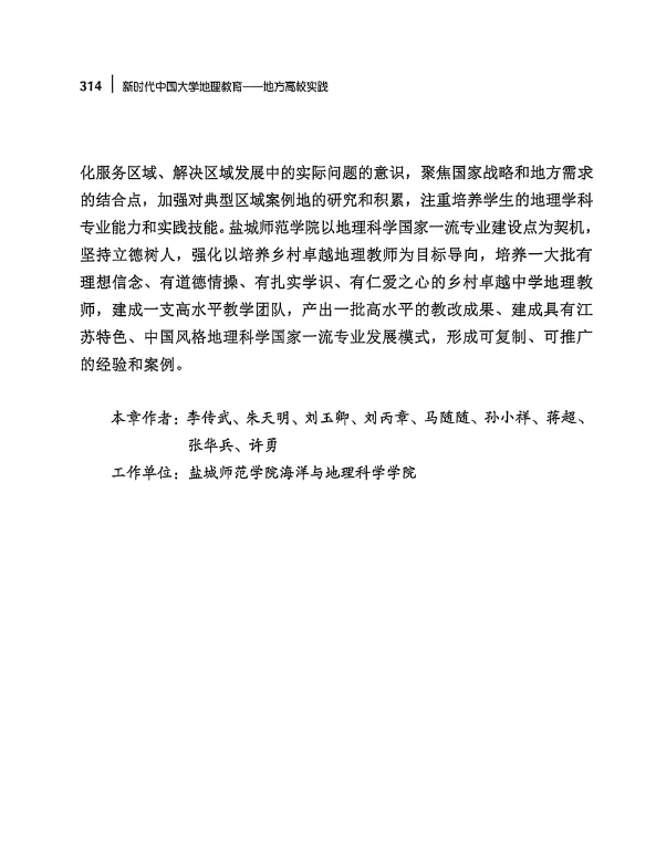 专业建设的第十八章,编入了必发集团welcome欢迎光临7790必发集团的地理科学国家一流专业建设与成效的实践成果(执笔人李传武、朱天明、刘玉卿、刘丙章、马随随、孙小祥、蒋超、张华兵、许勇),全面展示了学院地理科学国家一流专业(建设点)的专业建设水平和人才培养质量,建设经验将为全国地方高校地理教育改革提供有益借鉴。2021年学院地理科学专业成为国家一流本科专业建设点以来,聚焦地理科学区域特色,在乡村卓越地理教师培养体系、人才培养支撑体系、实践教学体系、大思政全面育人体系等方面不断探索,形成了独具区域特色专业建设模式。