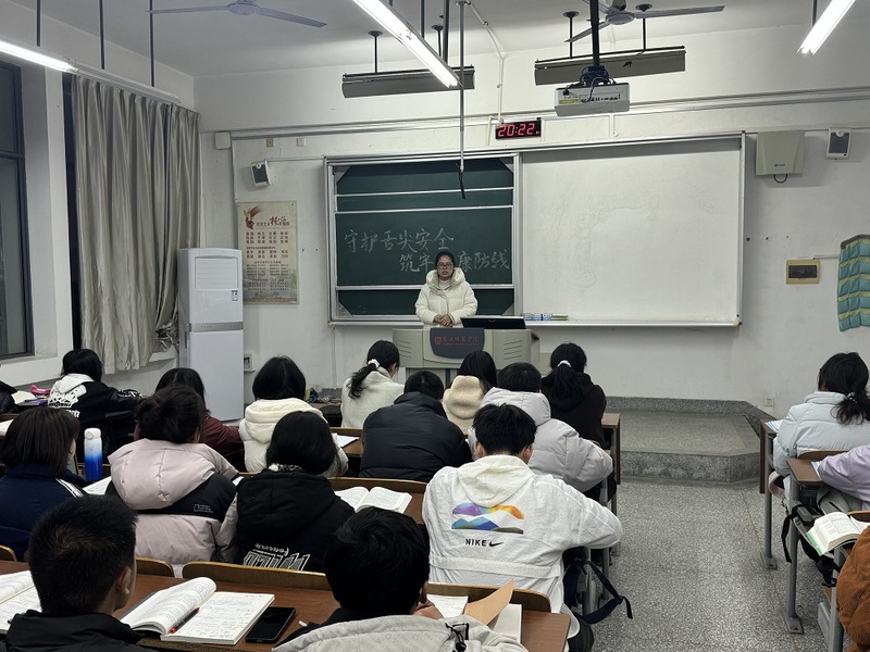 在互动交流环节,辅导员针对大家在日常饮食中普遍存在的误区进行了耐心细致的答疑解惑,并组织同学们分享自己知道的食品安全小常识。同学们参与热情高涨,积极投入讨论,纷纷表示今后会自觉抵制不健康食品,努力养成良好的饮食习惯。