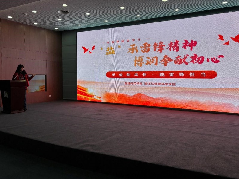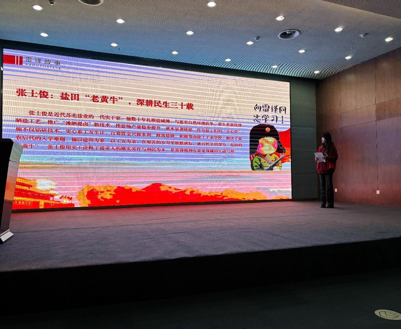 活动以“盐承雷锋精神,博润奉献初心”为主题,通过主题宣讲、事迹分享等多种形式,将雷锋精神的无私奉献、恪尽职守与海盐文化的质朴纯粹、泽润万物有机结合。宣讲中,同学们一同重温雷锋日记里的经典话语,从“甘做永不生锈的螺丝钉”中感悟坚守初心的执着,从“全心全意为人民服务”中体会无私奉献的真谛;同时,在事迹分享环节,同学们分享了张士俊、王进福、刘雨英等盐城盐业先辈的感人事迹,细数盐田“老黄牛”深耕民生、冒死运盐人守护家国、盐业女杰实干创新的担当故事,让大家看到雷锋精神在盐业领域的生动实践——先辈们在盐碱滩上的坚守、在艰难岁月中的实干、在为民服务中的赤诚,与雷锋精神跨越时空、高度共鸣。