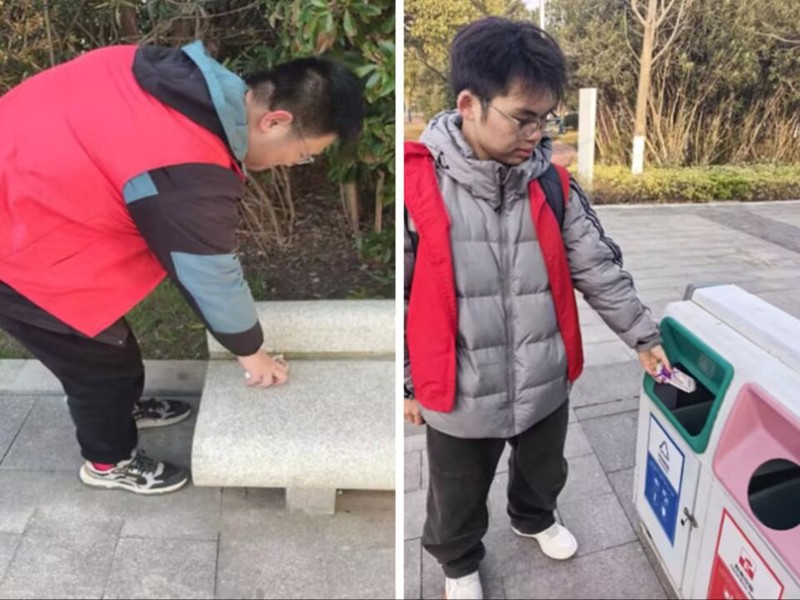 活动现场,志愿者们手持垃圾袋、垃圾夹等工具,分散于公园步道、绿化带等区域,认真排查并清理纸屑、塑料袋、烟头等各类生活垃圾。面对隐蔽在灌木丛、石缝中的杂物,志愿者们细致捡拾,不放过任何一处卫生死角。在清理过程中,志愿者们还主动向过往市民宣传环保理念,呼吁市民共同爱护公园环境,用实际行动传递文明新风,充分展现出青年学子的责任与担当。