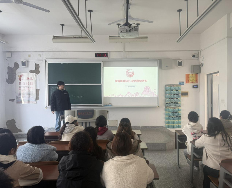 活动中,各班团支部深入学习贯彻落实习近平总书记给新疆谢依特小学戍边支教西部计划志愿者服务队全体队员的重要回信精神,深学细悟习近平总书记关于志愿服务的重要论述和重要指示批示精神,激励广大团员和青年在“十五五”新征程中勇担使命、展现作为。活动期间,各班支部组织专题学习会,通过报告解读、专家讲座、小组研讨等形式,组织团员和青年结合2026年西部计划报名通知,系统了解项目专项设置、选拔标准、政策保障及报名流程,引导团员和青年深刻领悟中国式现代化的深刻内涵与重大意义,结合自身学习生活、专业特色与职业规划,开展小组讨论与代表发言,鼓励团员青年分享观影感悟与学习心得,探讨在校园中弘扬雷锋精神、在社会实践中传承红色文化、在专业学习中锤炼过硬本领的具体路径,切实将雷锋精神转化为推动自身发展和国家建设的实际行动。地科251班的廖文轩同学同学表示:作为新时代青年,我们要怀揣着“天下兴亡,匹夫有责”的担当意识,不断努力刻苦提升自己,志存高远,将个人梦想与社会、国家相结合,并不断为之努力奋斗,以行动践行雷锋精神。